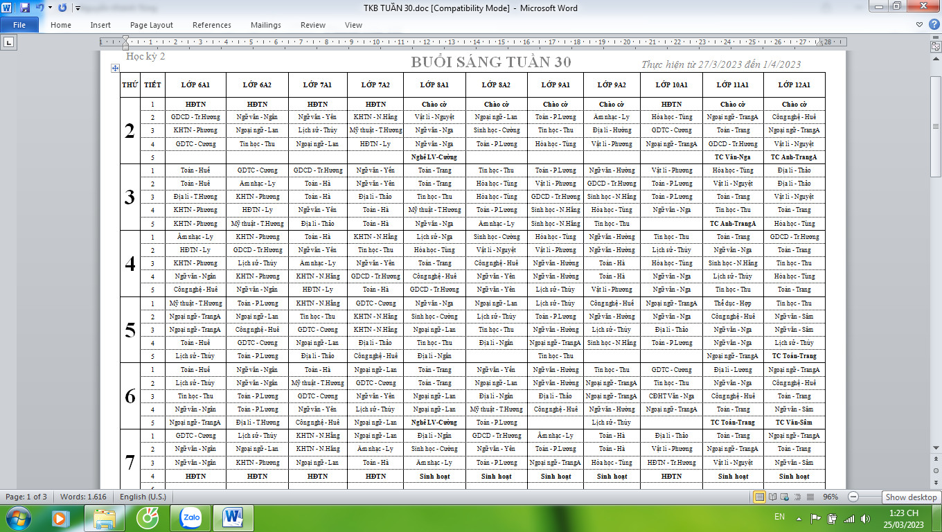 TKB SÁNG TUẦN 30 Published 26/03/2023 at 1360 × 768 in TKB TUẦN 30(Từ 27/3 đến 1/4/2023 ← Previous Next →