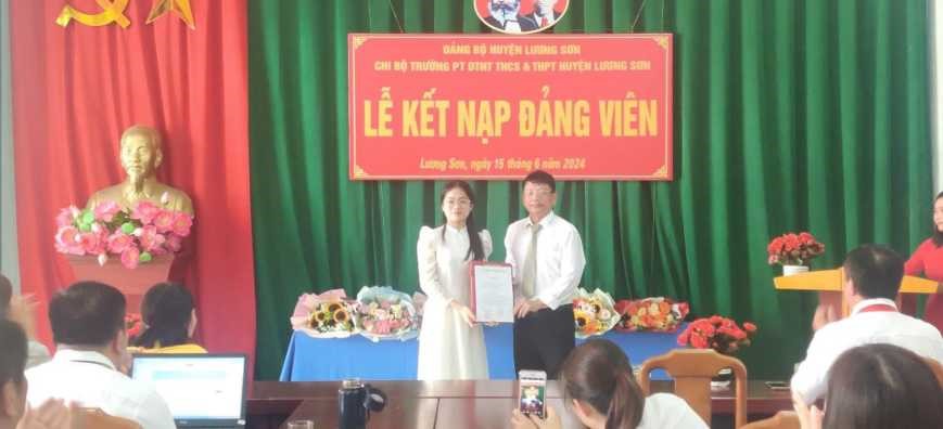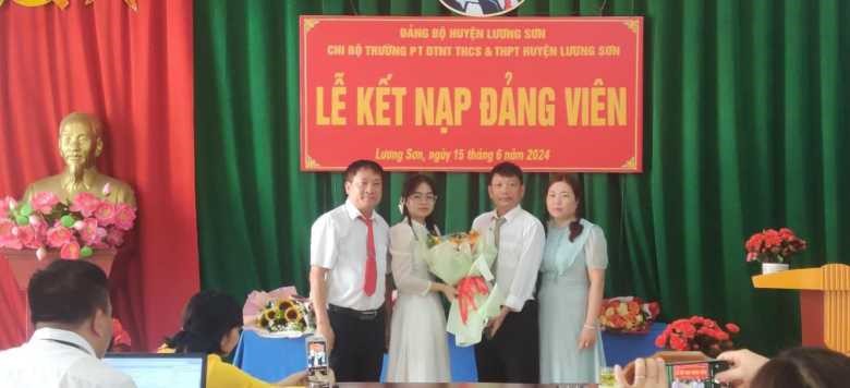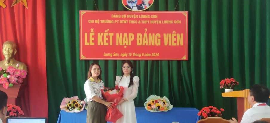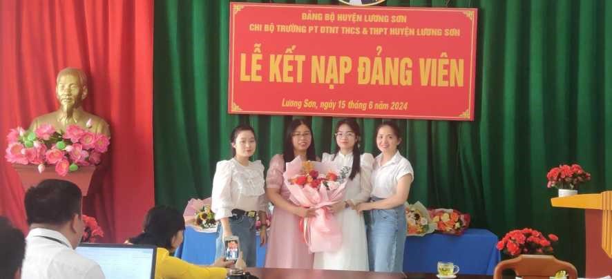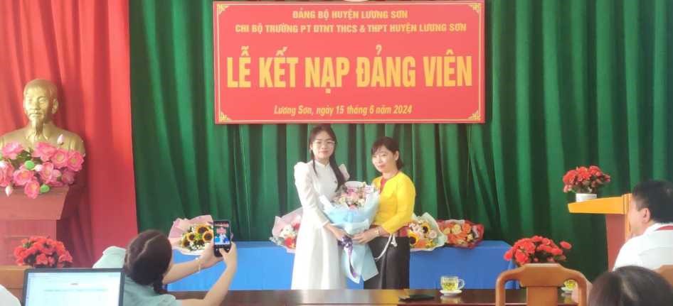 Căn cứ điều 4 Điều lệ Đảng Cộng Sản Việt Nam. Thực hiện Quyết định số 1763-QĐ-HU, ngày 05/6/2024 của Ban Thường vụ Huyện ủy Lương Sơn về việc “Kết nạp đảng viên”. Sáng ngày 15/6/2024, Chi bộ trường Phổ thông DTNT THCS&THPT Lương Sơn đã tổ chức Lễ kết nạp đảng viên mới cho quần chúng ưu tú Nguyễn Hương Trà – học sinh lớp 12A1.