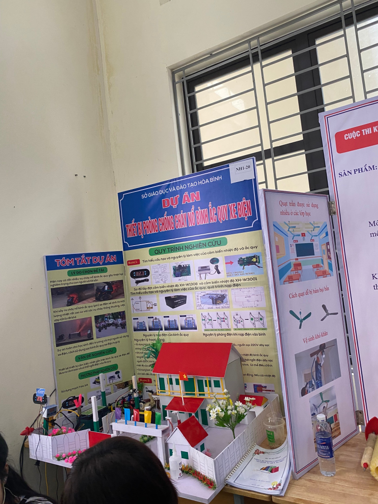 • Dự án 2: “Thiết bị phòng chống cháy nổ bình ắc quy xe điện” của học sinh Nguyễn Hương Trà lớp 12A1 và Bùi Nguyễn Trung Hiếu lớp 11A1 do cô Lê Thành Huế hướng dẫn.