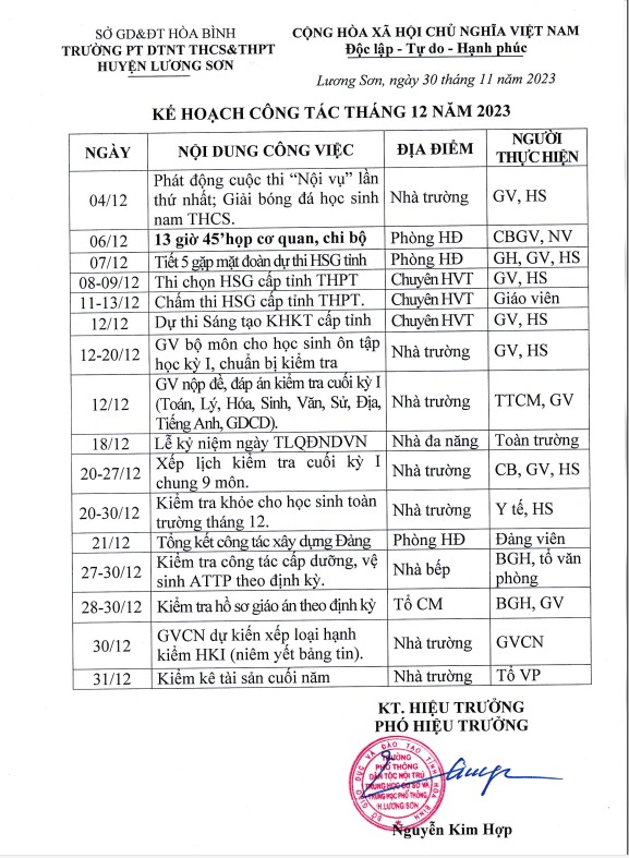 Lịch công tác hàng tháng LỊCH CÔNG TÁC THÁNG 12/2023 Posted on 03/01/202403/01/2024 by admin Bài viết liên quan LỊCH CÔNG TÁC THÁNG 3/2025 LỊCH CÔNG TÁC THÁNG 01/2025 LỊCH CÔNG TÁC THÁNG 12/2024 LỊCH CÔNG TÁC THÁNG 11/2024 LỊCH CÔNG TÁC THÁNG 10 NĂM 2024 LỊCH CÔNG TÁC THÁNG 9 Chủ động triển khai phòng, chống dịch trong năm học 2024-2025 LỄ KHAI GIẢNG NĂM HỌC MỚI 2024 – 2025