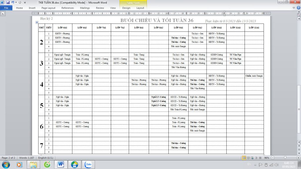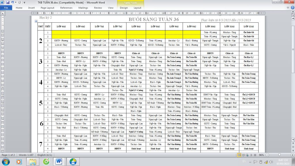 TKB TUẦN 36(Từ 8/5 đến 13/5/2023)
